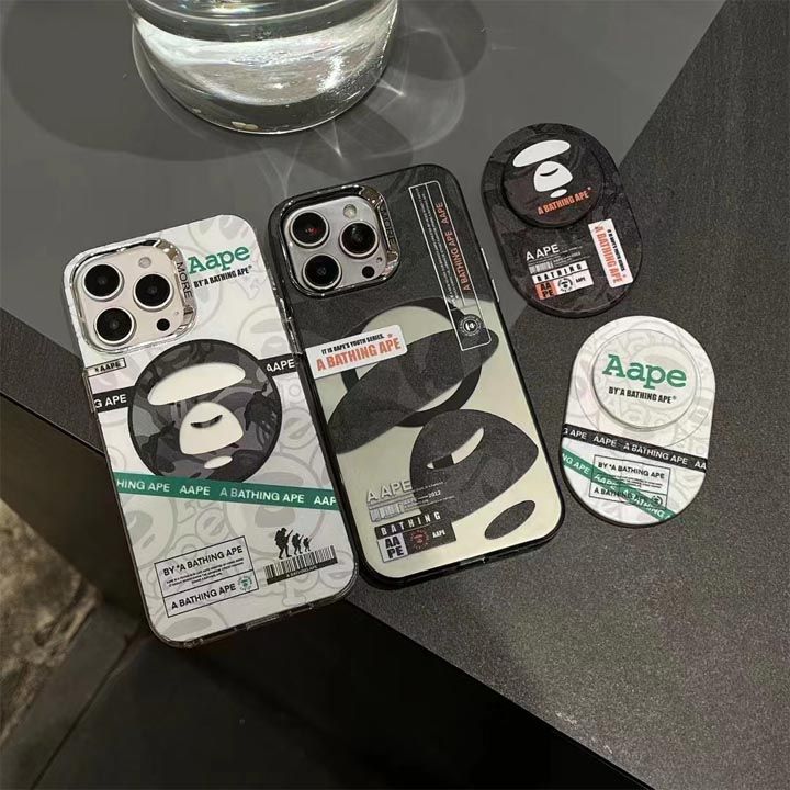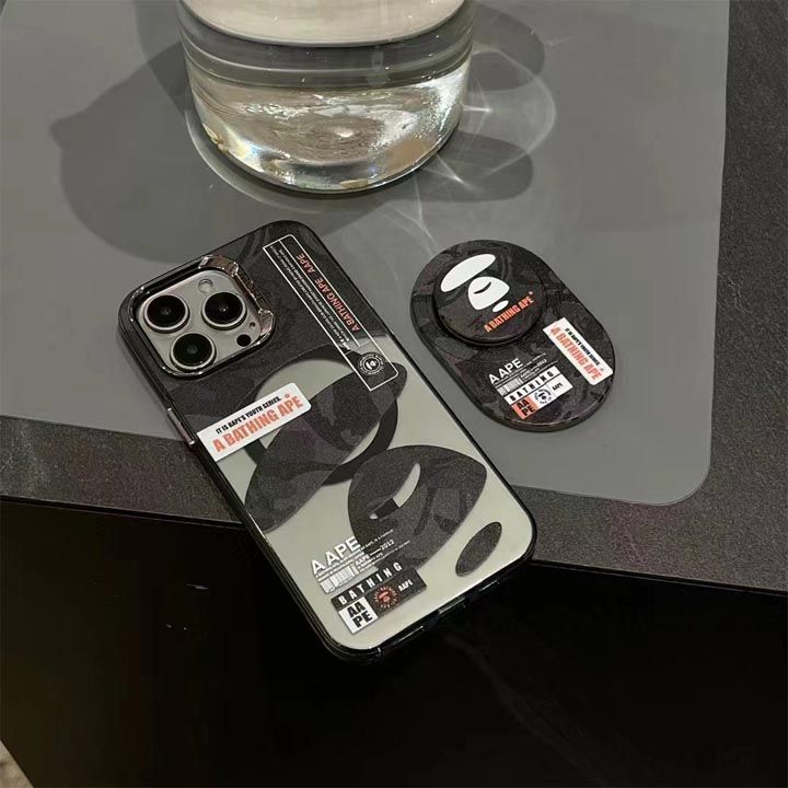 大人 エイプ aapeスマホケース安い iphone16プロmax 男性愛用 チェーン付き アイフォーン16プラス スマホケースキラキラ
